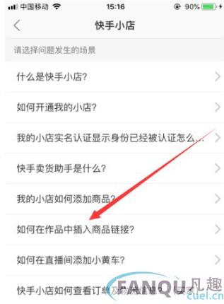 然后问题场景选择“如何在作品中插入商品链接?”,如图所示。