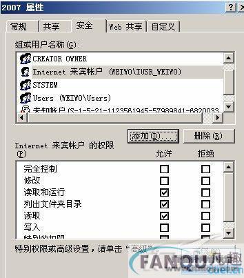 接下来我们就能对“IUSR_SERVERNAME“用户帐号权限进行有针对性设置了。在设置“IUSR_SERVERNAME“用户帐号权限时,我们先从图1所示的“组或用户名称“列表框中选中“IUSR_SERVERNAME“用户帐号,然后在对应该帐号下面的权限列表框中将“列出文件夹目录“、“写入“、“读取“等权限全部设置为“允许“,而不要将“完全控制“、“读取和运行“等权限设置为允许;此外,对于那些不需要通过Web进行写入操作的文件夹,我们只需要将“列出文件夹目录“、“读取“等权限赋予给“IUSR_SERVERNAME“用户帐号就可以了。到了这里,作为网站普通访问者的“IUSR_SERVERNAME“用户帐号就没有执行脚本的权利,那么这些普通来宾用户自然就无法对Web服务器进行各种形式的脚本攻击了,这样的话Web服务器的安全性就能在一定程度上得到保证了。