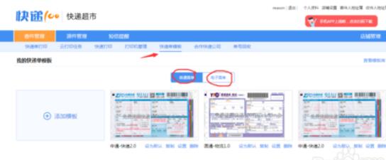 点击进入快递单模板,在快递单模板中,可以选择纸质面单和电子面单。