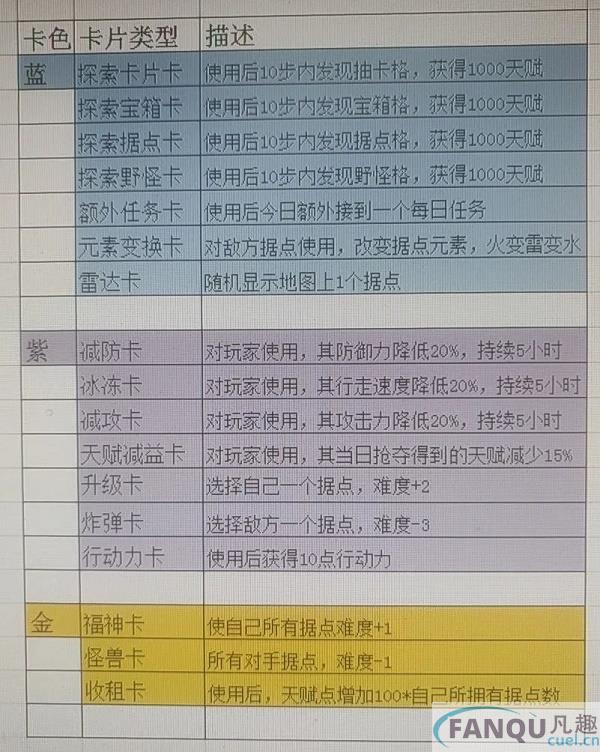 卡片当前版本所有种类如下图:
