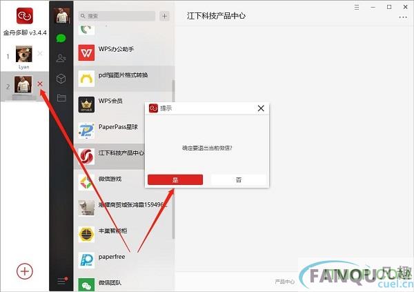 第八步、如果不需要该账号,点击头像右上角的“×”键可立即退出。