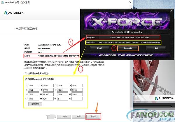 4、将注册机上“Activation”处的激活代码复制粘贴到AutoCAD2018上,