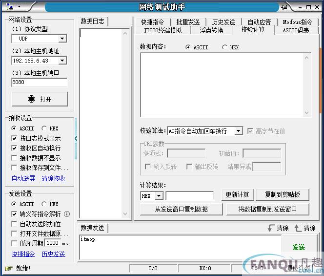 5.可以自动发送校验位,支持多种校验格式,如校验和、异或、CRC16、固定字节等;