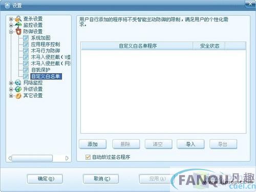 图3 列入白名单的程序将不会受到瑞星防御功能限制